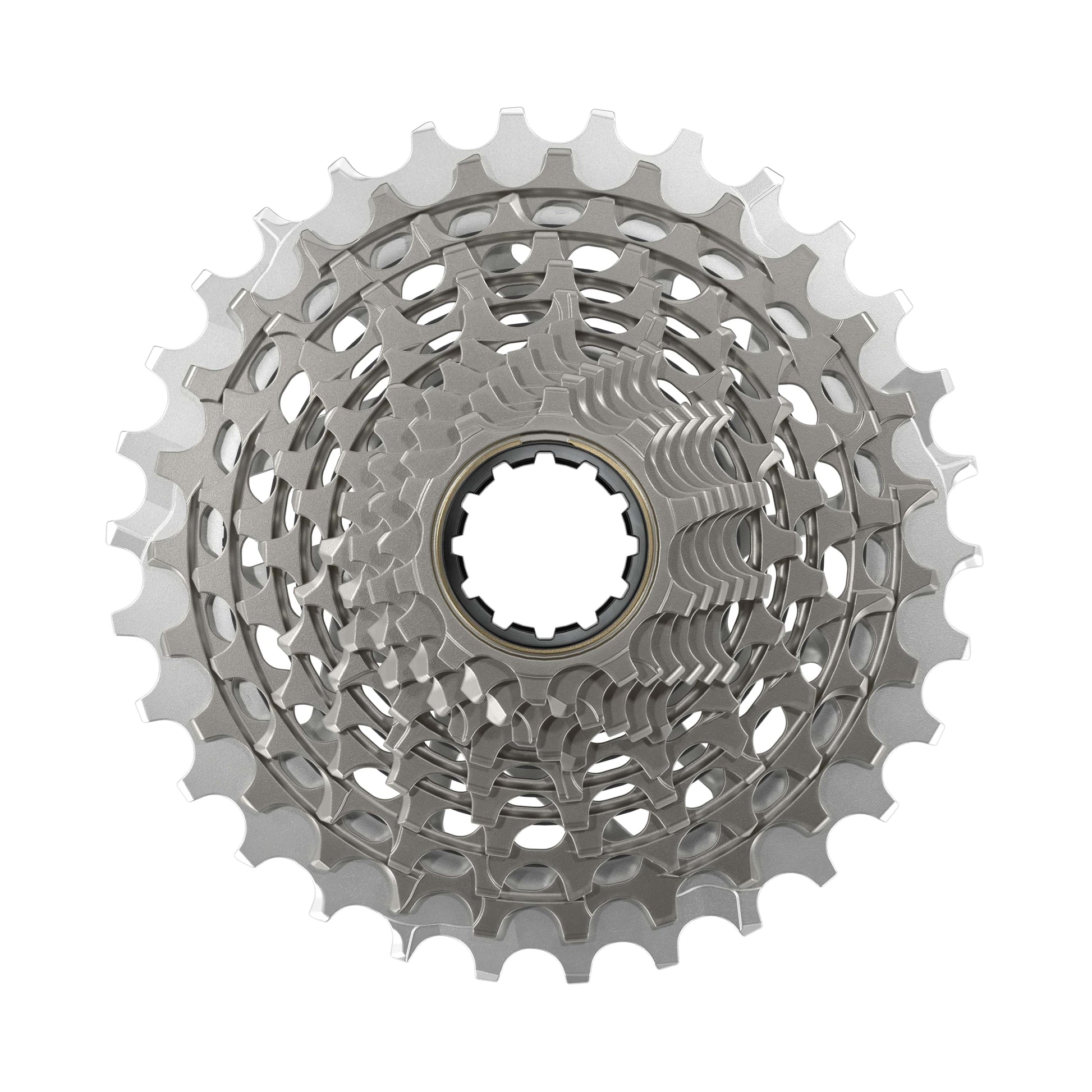 Wide gear range and precise shifting? Why not both? The SRAM RED AXS E1 XG-1290 12V cassette, the lightest and most durable cassette ever, opens up new horizons in gear selection. Four distinct cassette options offer secure shifting ramps specially designed for electronic shifting.