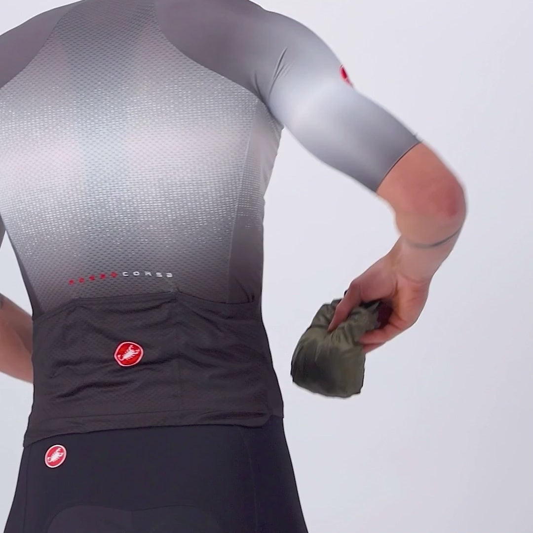Its stretch striped mesh back ensures excellent breathability and prevents the fabric from flapping in the wind, guaranteeing perfect aerodynamics. Practical and functional, it folds down to a very compact size, ideal for easy stowage in a pocket when the need for protection disappears.