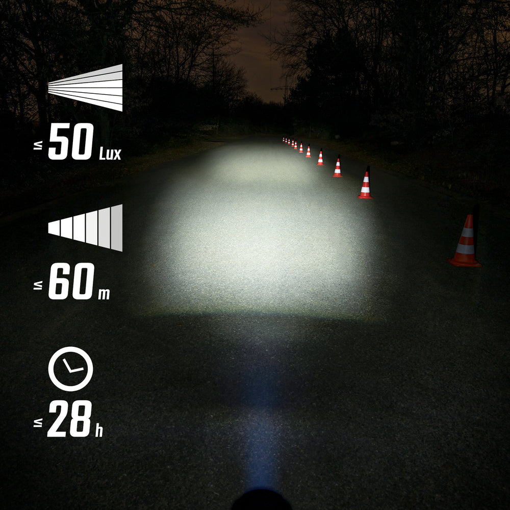 With its 50 lux and 60-meter range, theSIGMA AURA 50front light is much more than just a light: it's an intelligent ally for all your urban journeys. Thanks to its integrated brightness sensor, it automatically adjusts its intensity according to the environment, offering a perfect balance between safety, energy efficiency and driving comfort.