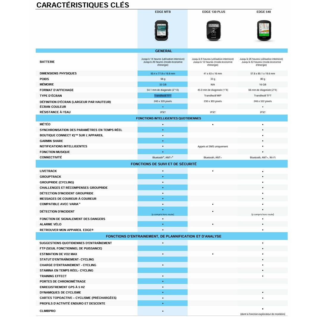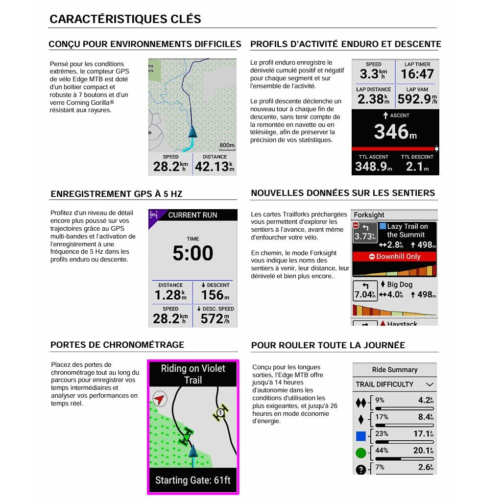 Visit GARMIN EDGE MTB GPS is a concentrate of technology specially designed for MTB enthusiasts.enduro and downhill. Resistant, intuitive and ultra-precise, it adapts to the most extreme conditions thanks to its rugged design. Its 2.13" MIP color display is perfectly legible even in bright sunlight, and is protected by a scratch-resistant Corning® Gorilla® Glass lens. Its 7-button interface ensures smooth navigation, even when wearing gloves or in muddy, dusty or damp environments.