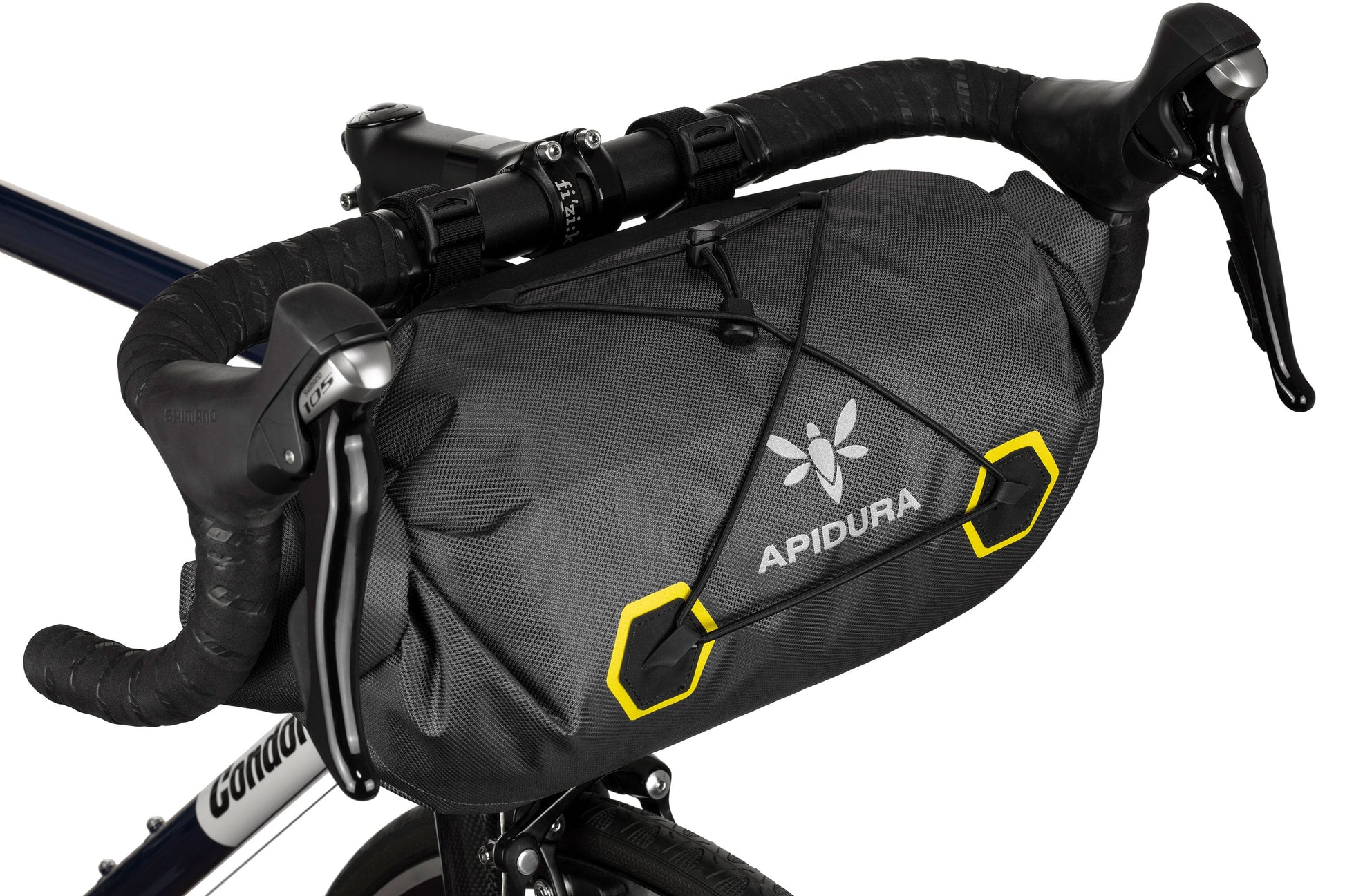 The APIDURA EXPEDITION HANDLEBAR PACK 14 L is designed for cyclists looking for sturdiness and capacity on long expeditions. Its design allows lightweight, compressible equipment to be carried without the need for a front rack, thanks to a reinforced fastening system that enhances the bike's stability and maneuverability.