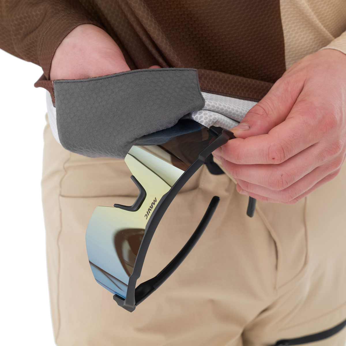 Intègre un essuie-lunettes pratique