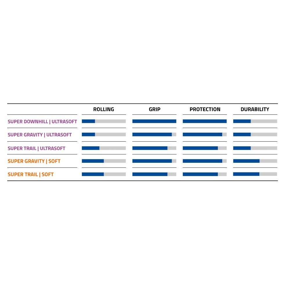 Its tread compound Addix UltraSoft tread compound - characterized by a super-soft central tread and extra-soft zones on both sides - proves incredibly effective on loose and unstable ground, while its cleverly placed high lugs ensure optimum self-cleaning. The carcass Super Ground frame combines lightness and stability. At ease on all terrains, it adapts easily to trails, long rides and all types of ground. What's more, it ensures a balanced ratio between puncture protection and easy rolling.