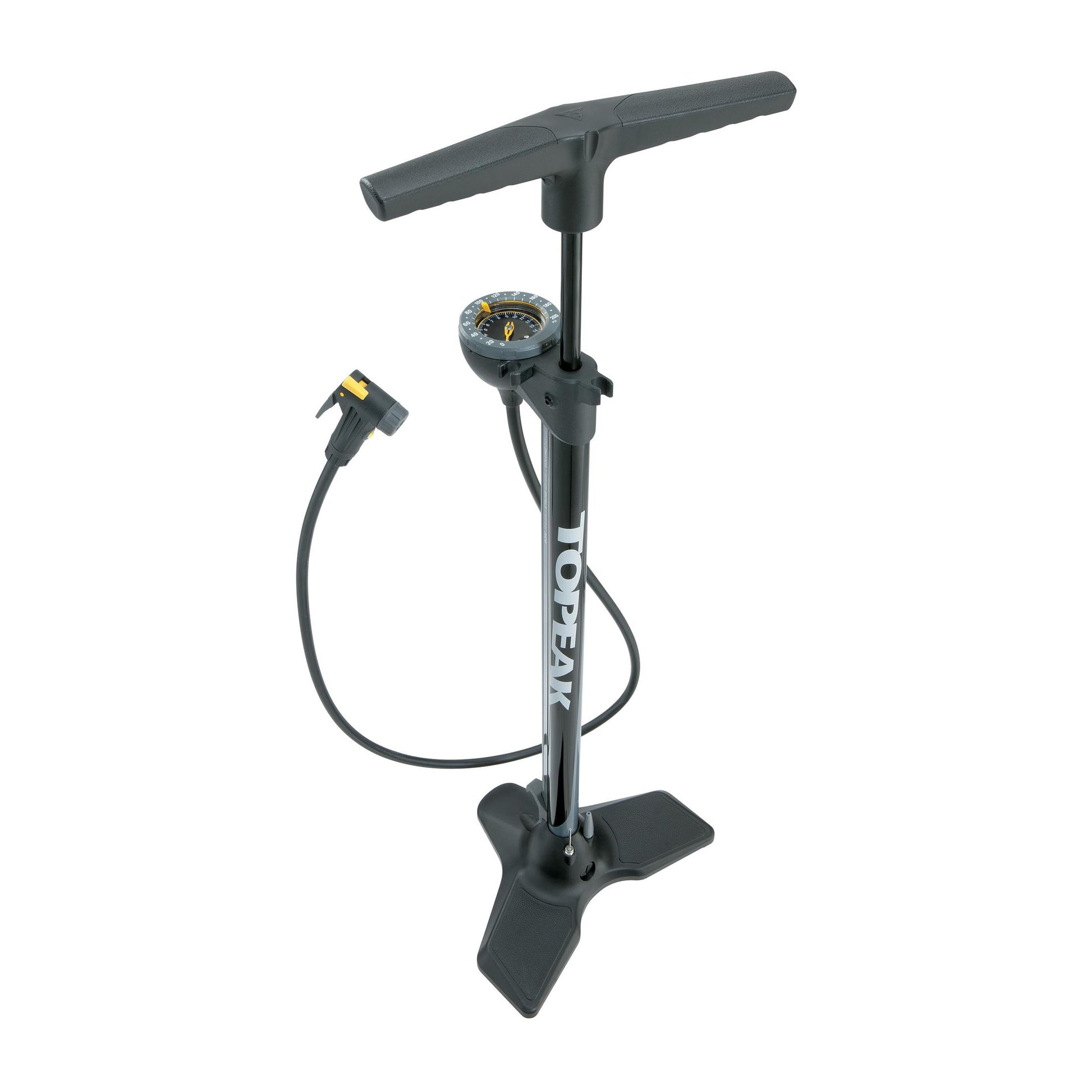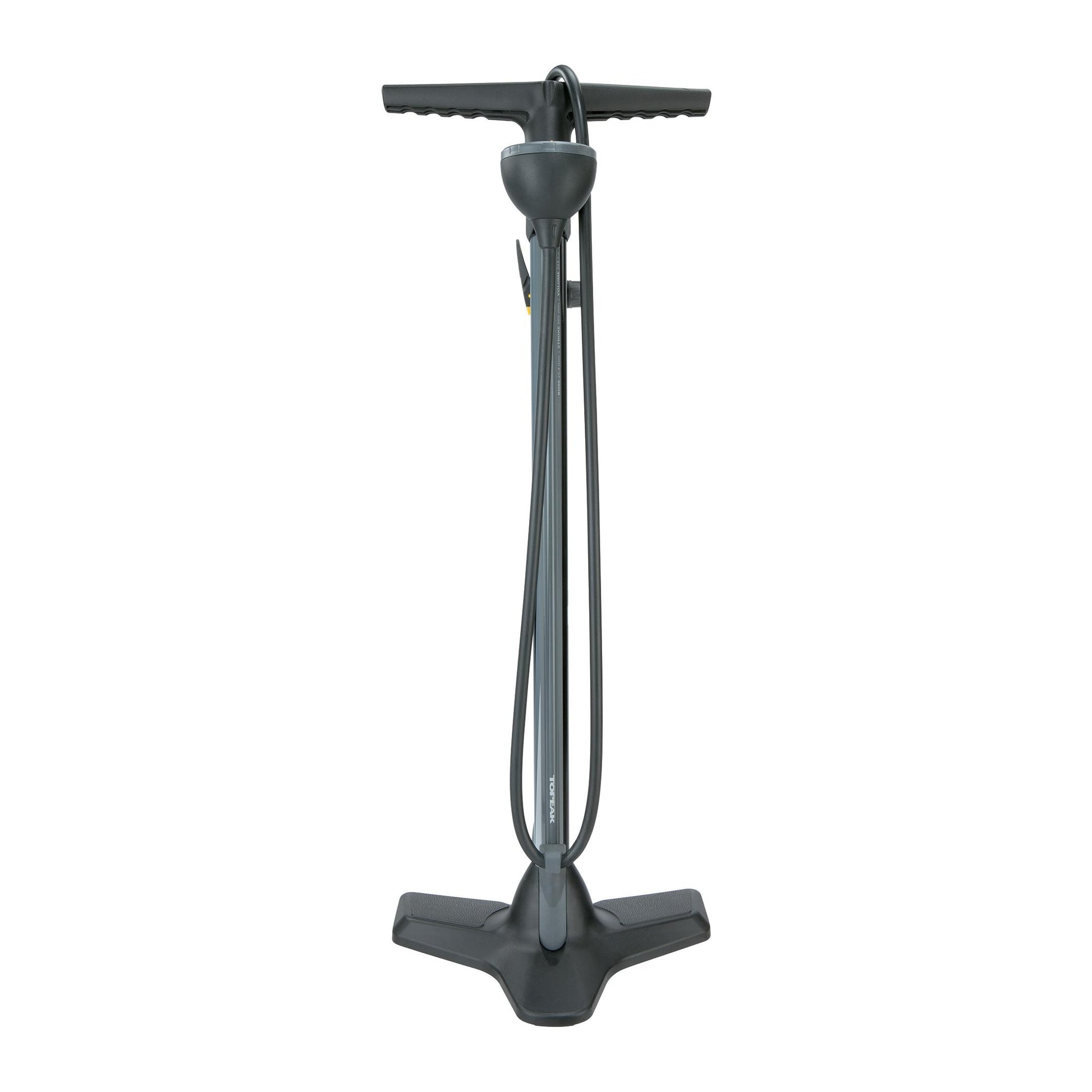 The TOPEAK Joe Blow Race foot pump foot pump combines performance with affordability. Designed to effortlessly reach high pressures (up to 14 bar), it features the TOPEAK Joe Blow Race head. SmartHead head, which makes it easy to switch from Presta to Schrader valves and automatically adjusts air flow. What's more, a button enables the air in the pump to be emptied, making it safe to remove the head.