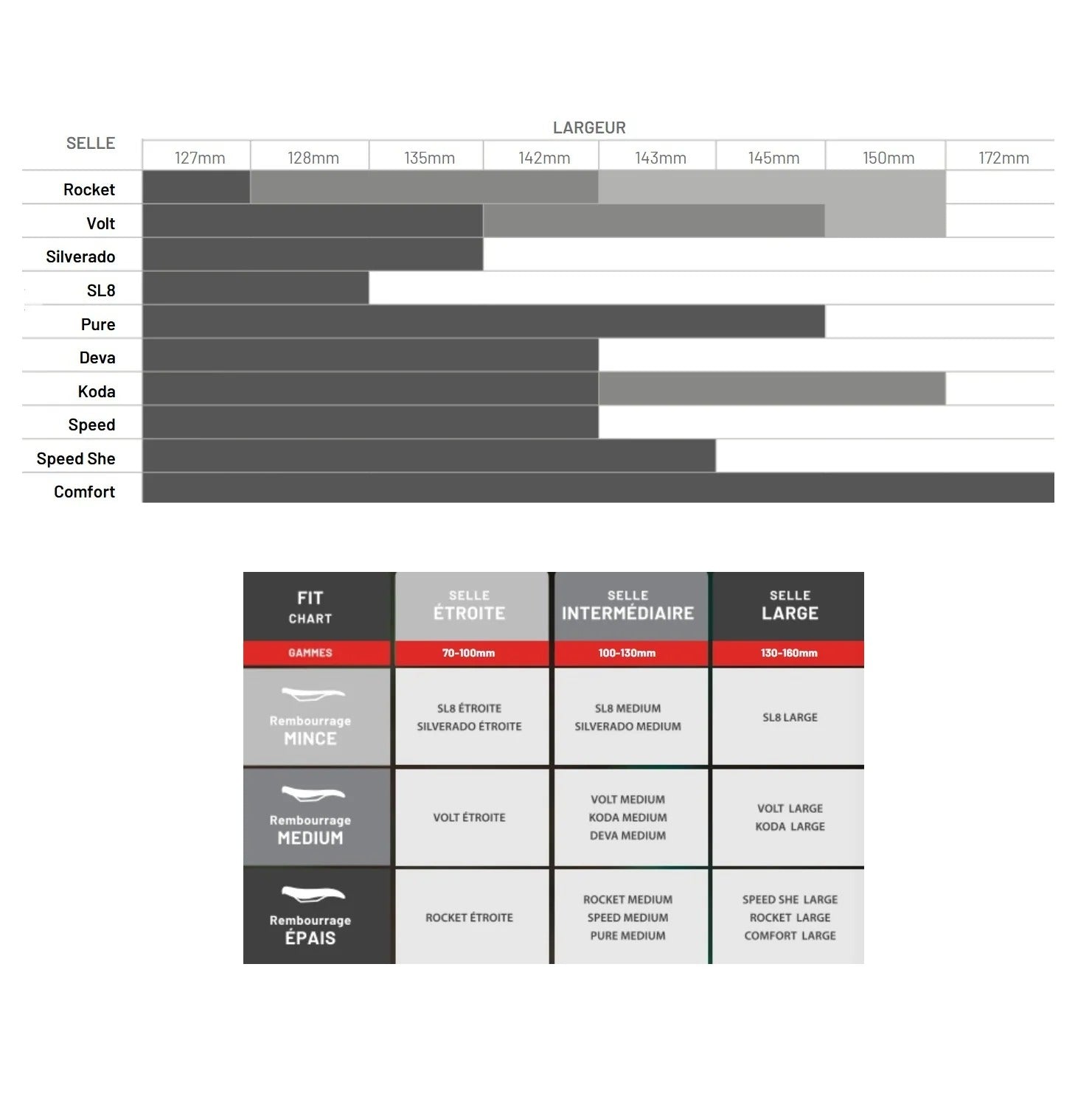 Largeur : medium 142mm (largeur ischions 101-130mm)